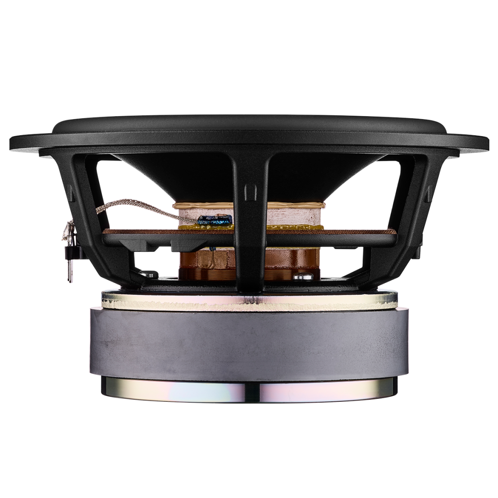 Complementing the tweeter is a dedicated midrange driver (the only one in the Focus range), derived from the award-winning Contour 60. It’s a 15cm unit with a powerful neodymium magnet, a glass-fibre voice-coil former and a trademark Dynaudio aluminium voice-coil. This fleet-footed unit uses lightweight magnet and coil materials to give it more agility while maintaining a tight grip on midrange frequencies. And for you, that means Contour-level performance.