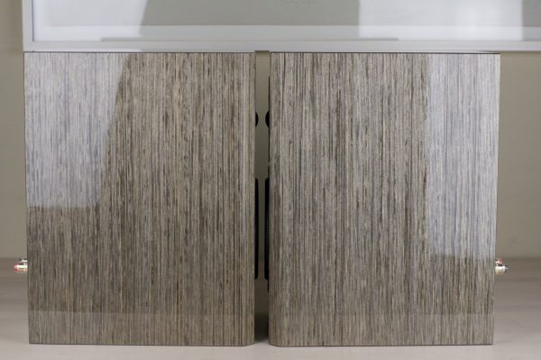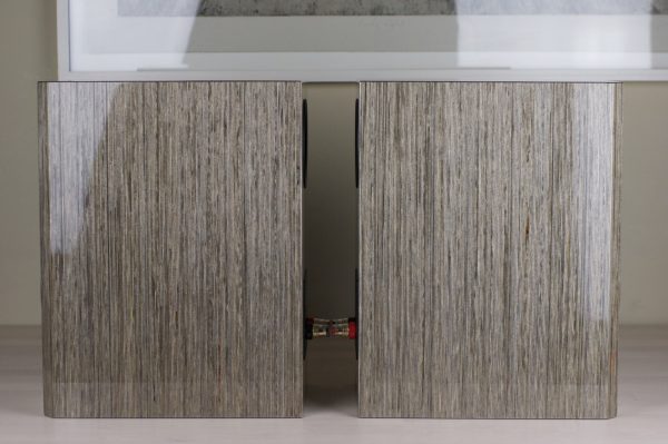 This finish is from the last limited edition range and, as you can see, these are in the grey tinted birch veneer. Unusually, this is cut from birch plywood before being stained and lacquered to a high gloss. This is a striking yet subtle finish with an element of wood colour and shimmer. Once mixed with reflections of surrounding colours it comes to life. Photographs don’t really do it justice.