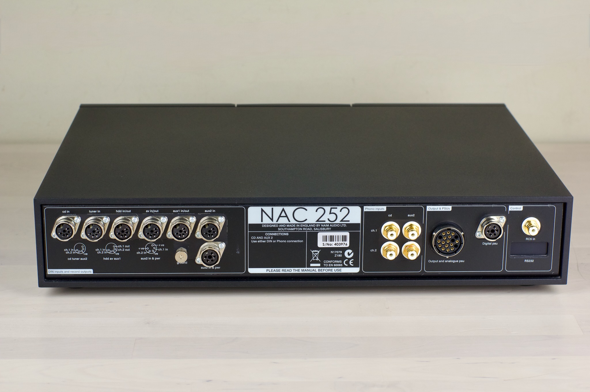 Naim NAC 252. An excellent example of one of Naim’s more aspirational preamplifiers. Serial number is 403976 and it dates to April 2016. There is no service history, it’s entirely as built by Naim.