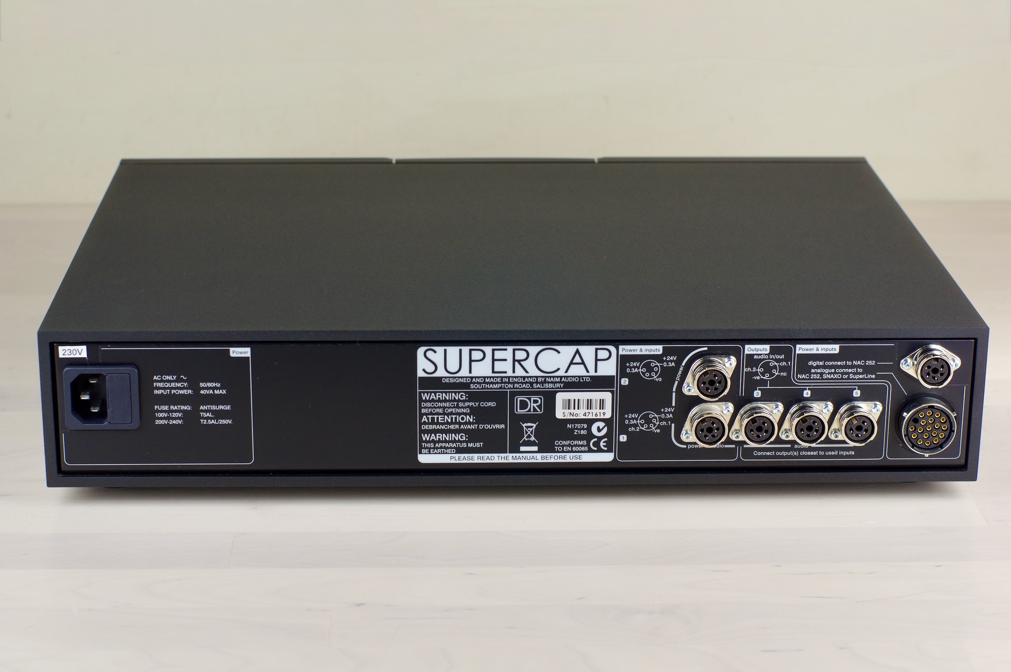 Each of the multiple power outputs on the SuperCap DR uses Naim Audio’s specially designed discrete regulators for optimum performance. The SuperCap DR can be used to power all of the Naim Audio preamplifier (except the NAC 552 and NAC-N 172 XS), Superline phono stage and active crossovers, and is the only choice for supplying power to the NAC 252 preamplifier. We just happen to have its previous partner here.